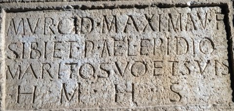 - Murcid(ia) Maxima v(iva) f(ecit) / sibi et P(ublio) Ael(io) Epidio / marito suo et suis / h(oc) m(onumentum) h(eredem) s(equetur)