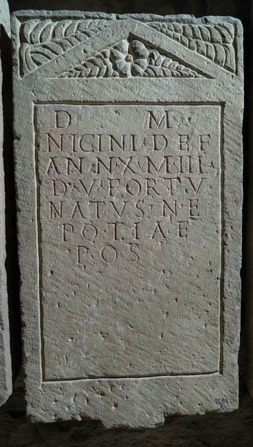 - D(is) M(anibus) / Nicini(!) def(unctae) / ann(orum) X m(ensium) III / d(ierum) V Fortu/natus ne/potiae / pos(uit)
