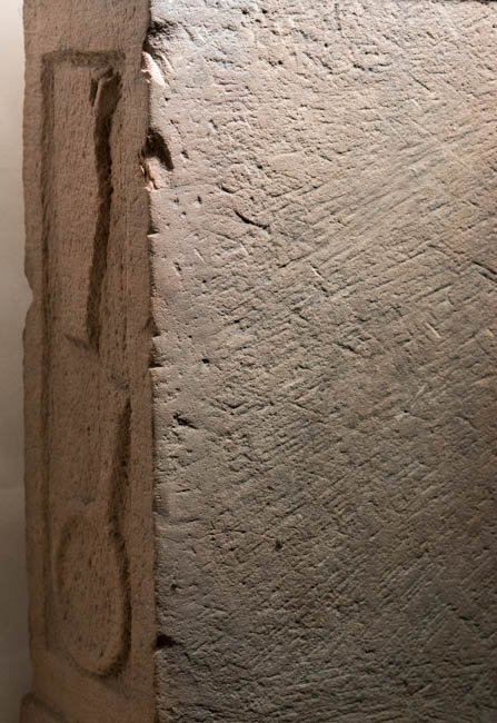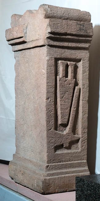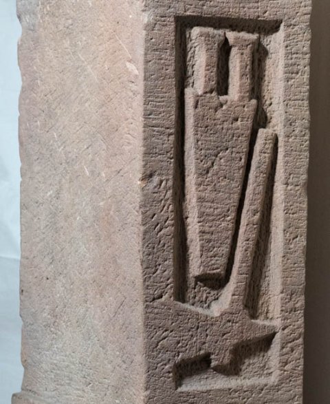 - auf der Oberseite Opferschale, auf den Nebenseiten Gefäße (Griffschale, Kanne) und Opferwerkzeug (Messer, Beil)