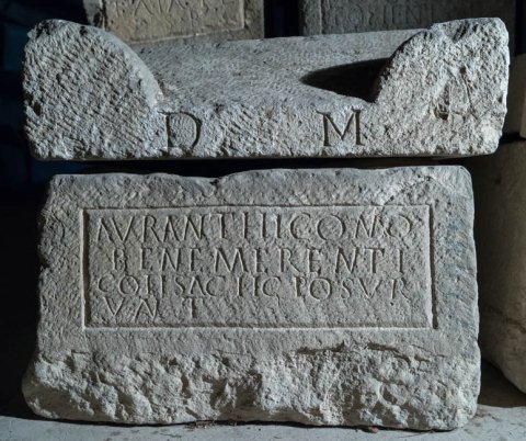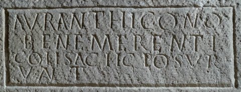 - D(is) M(anibus) ? // Aur(elio) Anthigono / bene merenti / coll(egae?) saciic(ariorum)! posu(e)r/unt