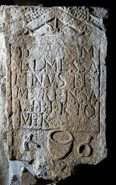 - D(is) M(anibus) / L(ucius) L(icinius?) Messa/linus be(ne) / merens a / liberto / mer(enti)