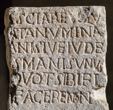 - ---] / [--- hanc sepultu]//ram si qu[is] // [de]asciare volu//erit habe[at]// [ir]ata numina // quitquit(!) [Ro]//[m]ani sive Iude//i vel Crissi[ani](!) // colent e[t]//[deo]s Manis(!) unus//quisque // quot sibi fi//[e]ri non vu[lt] // facere non // debet