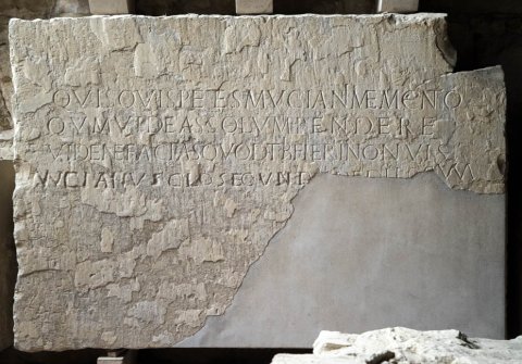 - Quisquis petes Muciani memento(!) / qum(!) videas solum pendere / vide ne facias quod tibi fieri non vis / Mucianus Clo(dio) Secund[o] dedi locum