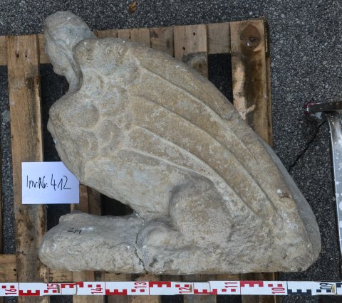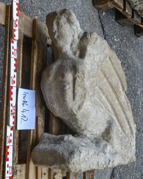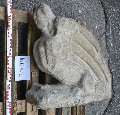 - Mythische Figur : hockende geflügelte Sphinx. Akroter eines Grabbaus.