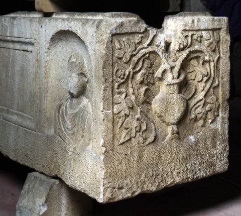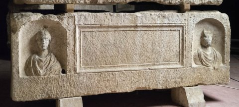 24800 Sarkophag mit Porträtnischen und leerem Schriftfeld