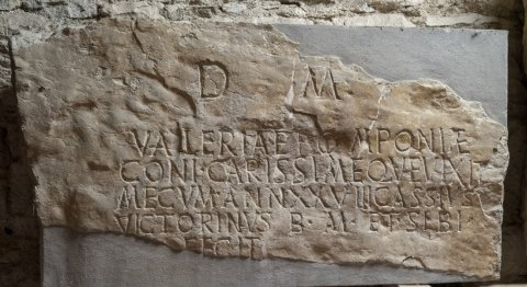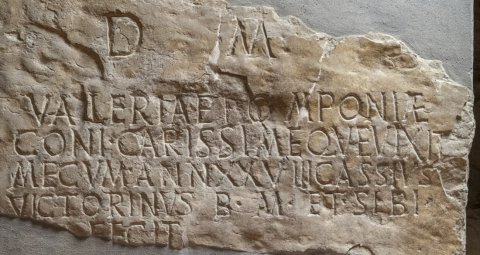 - D(is) M(anibus) / Valeriae Pomponiae / coni(ugi) carissim(a)e qu(a)e vixit / mecum an(nos) XXVIII Cassius / Victorinus b(ene) m(erenti) et sibi / fecit