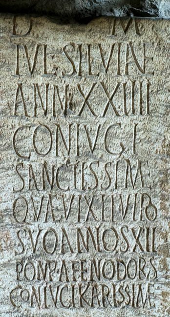 - D(is) M(anibus) / Iul(iae) Silvinae / ann(orum) XXIIII / coniugi / sanctissimae / quae vixit viro / suo annos XII / Pomp(onius?) Afenodorus(!) / coniugi karissimae