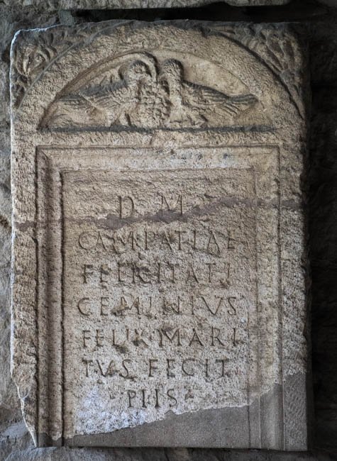 - D(is) M(anibus) / Campatiae / Felicitati / Geminius / Felix mari/tus fecit / piis(simae)