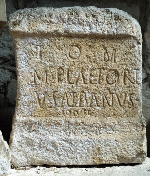 - I(ovi) O(ptimo) M(aximo) / M(arcus) Plaetori/us Albanus / posuit