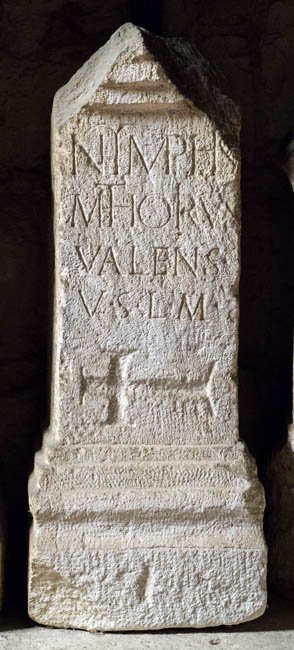 - Nymphis / M(arcus) Thorius / Valens / v(otum) s(olvit) l(ibens) m(erito)
