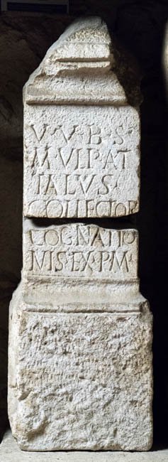 - V(---) V(---) B(---) s(acrum) / M(arcus) Ulp(ius) At/talus / collector / cognatio/nis ex p(ecunia) m(ultaticia?)