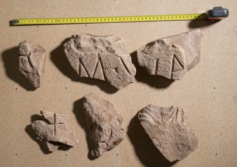 - Totenmahl (?): erkennbar Diener in kurzer Tunica, Gewandreste einer größeren Figur.