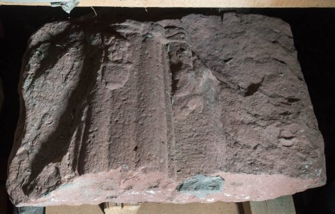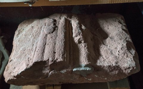 - 1901 Vangerowstraße (ehem. Bergheimer Kirche), Platte eines mit vier römischen Grabsteinen geschützten, beigabenlosen merowingischen Platten-/ Körpergrabes (Fundstellen-Nr. 306)