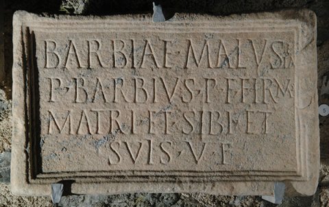 - Barbiae Malusiae / P(ublius) Barbius P(ublii) f(ilius) Firmus / matri et sibi et / suis v(ivus) f(ecit)