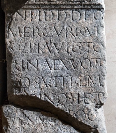 - In h(onorem) d(omus) d(ivinae) deo / Mercurio Ur/sulia Victo/rina ex voto / [p]osuit l(ibens) l(aetus) m(erito) / [S]abino II et / Venusto c[o(n)s(ulibus)]