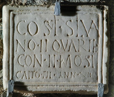 - Cosuti(o) Silva/no et Quartlai / con(iugi) e(t) Mosi/caito fil(io) ann(orum) VII