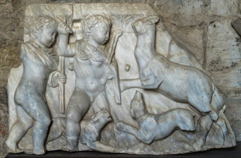 - Eroten mit Hunden bei der Jagd auf Hirsche