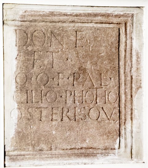- [---]don(a)e / [---] et / [---]o Q(uiniti) f(ilio) Pal() / [--- Lu?]cilio Photo / [--- p]osterisqu(e) / [----]?