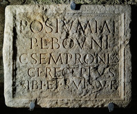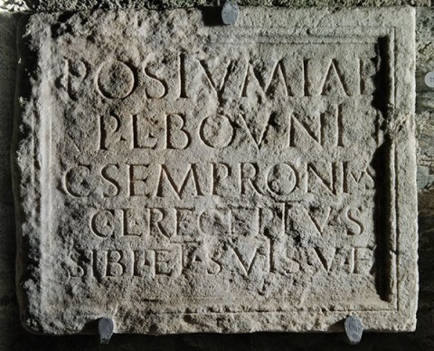 - Postumiae / P(ublii) l(ibertae) Bouni / C(aius) Sempronius / C(ai) l(ibertus) Receptus / sibi et suis v(ivus) f(ecit)