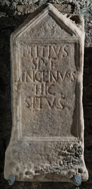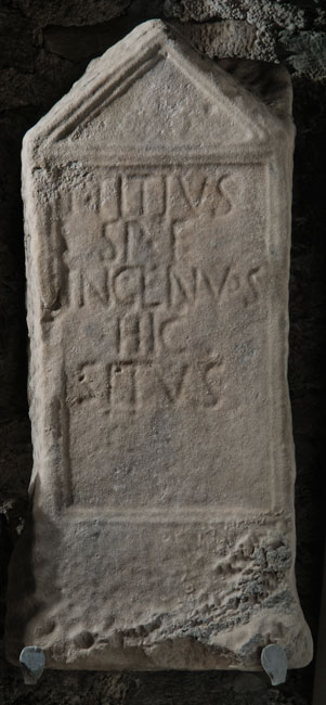 - P(ublius) Titius / Sp(urii) f(ilius) / Ingenuos (!) / hic / situs