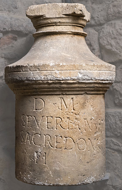 - D(is) M(anibus) / Severianus / Sacredoni / fi(lius)