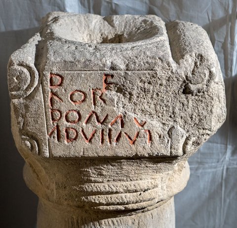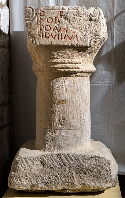 - säulenförmiger Altar mit vierseitigem Kapitell, darauf die Inschrifttafel