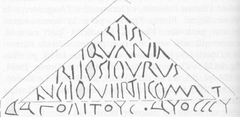 - A/rese/quani A/rios iouros / Lucio(n) Nertecoma(ri) / griechisch: Δαγολιτους αυοωυτ