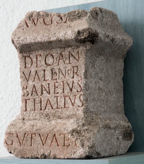 - Aug(usto) sac(rum) // deo An/vallo Nor/baneius / Thallus // gutuate[r]
