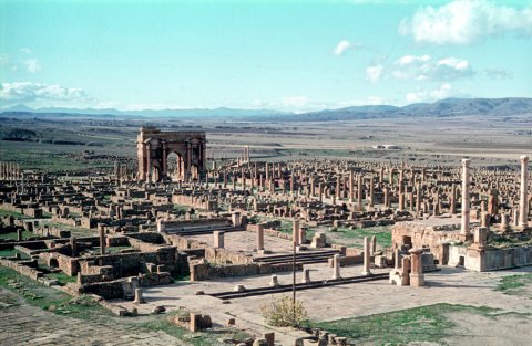 - Imp(erator) Caesar divi / Nervae f(ilius) Nerva Traianu[s] / [Aug(ustus)] Germani[c]us pontif(ex) / [max(imus)] tr[i]b(unicia) pot(estate) I[III co(n)]s(ul) III p(ater) p(atriae) co[l(oniam)] / [Mar]c[i]anam Tr[ai]anam Th[a]/[muga]di per [[leg(ionem) III]] Au[g(ustam)] / [fec(it) L(ucio) M]unati[o] Gallo leg(ato) / Aug(usti) pro [pr(aetore)] // [Imp(eratori) Caes(ari) divi M(arci)] Antonini Pii G[erman(ici) Sar]mat(ici) fil(io) divi Commod[i f]ratri divi [Antonini Pii nepoti divi Hadrian]i pro[nepoti divi Traiani] / [Parthici abnepoti di]vi Nervae adnep[oti L(ucio) Septimi]o Severo P[i]o Pertinaci Aug(usto) Ara[b(ico) Adiab(enico) Parth(ico) max(imo) pont(ifici) max(imo) trib(unicia) pot]est(ate) XI [imp(eratori) XI co(n)s(uli) III p(atri) p(atriae)] / [et Imp(eratori) Caes(ari) Imp(eratoris)] Caes(aris) L(uci) Septim[i] Sever[i Pii Pertina]cis Aug(usti) Arab(ici) Adia[b(enici) Pa]rthici max[imi filio divi M(arci) Antonini Pii Germa]nici Sa[rm]a[tici nepoti] / [divi Antonini Pii pro]nepoti divi Had[riani] abnepoti [divi Traiani] Parthici et d[ivi Nervae adnepoti M(arco) Aure]lio An[ton]ino P[io Augus]to / [trib(unicia) potest(ate) VI co(n)s(uli) [[[et P(ublio) Getae nobilissimo Caesari]]] «[fortissimo] Invi[ctissimoque princi]pi» Aug(usto) Im[p(eratoris) L(uci) Septimi Pii Pertin]acis A[ug(usti) fi]lio [princ(ipi) iuv(entutis)] et / [Iuliae Domnae August]a[e coniugi Imp(eratoris) L(uci) Septimi Severi Pii Pertina]cis Au[g(usti) mat]r[i Aug]usti [[[et Caesaris]]] «nostri» [et castrorum et] [[[Fulviae Plautillae Aug(ustae)]]] «senatus e]t patri[ae e]t» [M(arci) Aureli Anto]nini [Pii Aug(usti)] [[[coniugi P(ubli) Fulvi Plautiani c(larissimi) v(iri) filiae]]] «[fortissimi] Invi[ctissimique principis]» [res publica coloniae Thamu]ga[d(ensium) d]evo[ta nu]mini eo[rum d(ecreto) d(ecurionum) p(ecunia) p(ublica)]