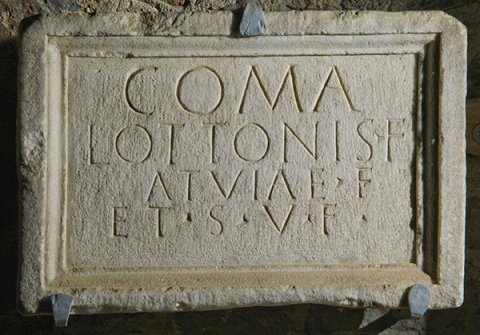 - Coma / Lottonis f(ilia) / Atuiae f(iliae) / et s(ibi) v(iva) f(ecit)