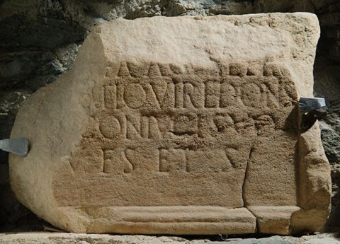 - Itria Achillis f(ilia) / Tertio Viredonis / f(ilio) coniugi suo / v(iva) f(ecit) s(ibi) et s(uis)