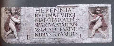 - Herenniae / Rufinae virgi/niae obsequentis/simae quae vixit an(nos) / XX C(aius) Caecil(ius) Satur/ninus (centurio) maritus // f(aciendum) c(uravit)