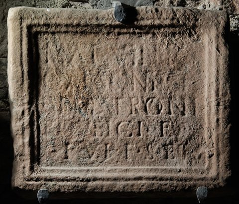 - Matu[---] / C[--]soni[---] / Patroni(o) / [U]rbici f(ilio) / t(itulum) vi(va?) f(ecit) s(ibi) et [s(uis)]