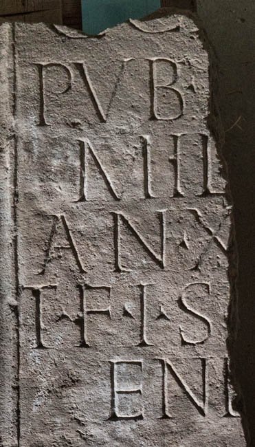- ---] / Pub(lilia) [---] / mil(es) [---] / an(norum) X[---] / t(estamento) f(ieri) i(ussit) s[ec(undus)? h(eres)? pon]/end[um? c(uravit)?]