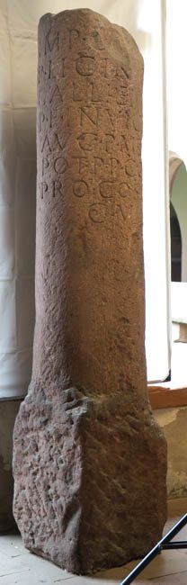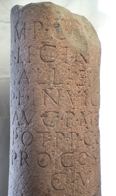 - Imp(eratori) C[aes(ari)] / P(ublio) Licinio / Gallieno / P(io) F(elici) Invicto / Aug(usto) p(ontifici) m(aximo) tr(ibunicia) / pot(estate) p(atri) p(atriae) co(n)s(uli) / proco(n)s(uli) / c(ivitas) V(angionum)