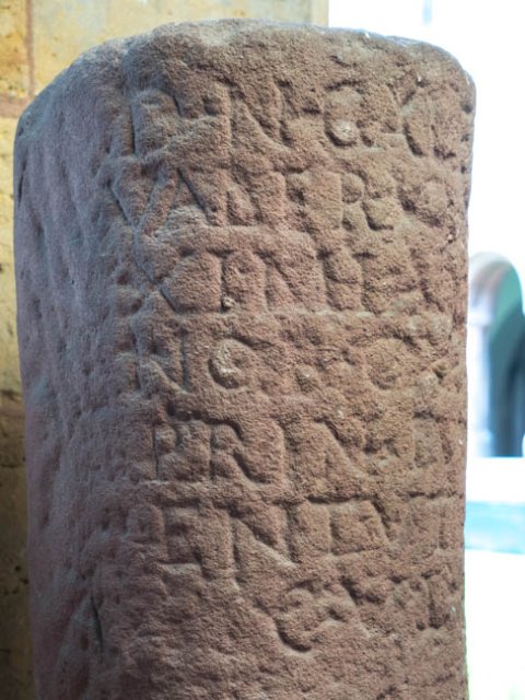 - D(omino) n(ostro) Galerio / Valerio Ma/ximiano / nob(ilissimo) Caes(ari) / prin(cipi) iuv/entutis / c(ivitas) V(angionum) l(eugam) I