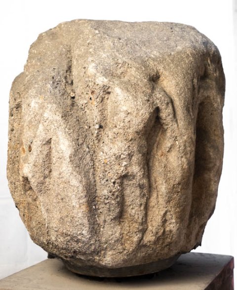 - oben u. unten abgebe., stark verwittert u. bestoßen
