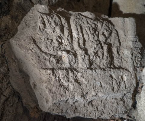 - Fragment mit Rest des rechten Randes, stark bestoßen