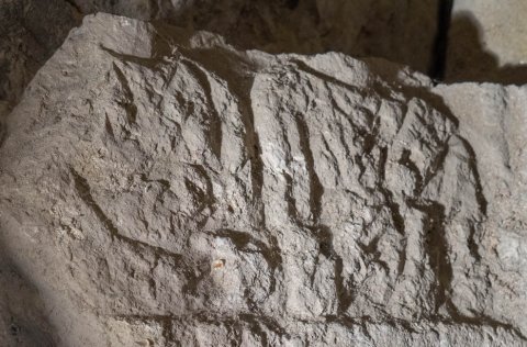 - Zwei Halbfiguren (Ehepaar) zwischen Säulen, Mann mit Toga contabulata (?) und Rolle (volumen). Unterhalb der Säulenbasis Rosette.
