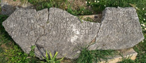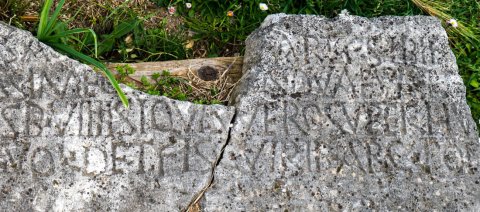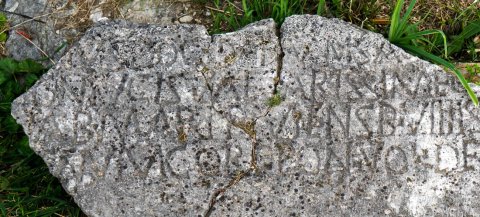 25481 Fragmente eines Sarkophagdeckels mit Inschrift