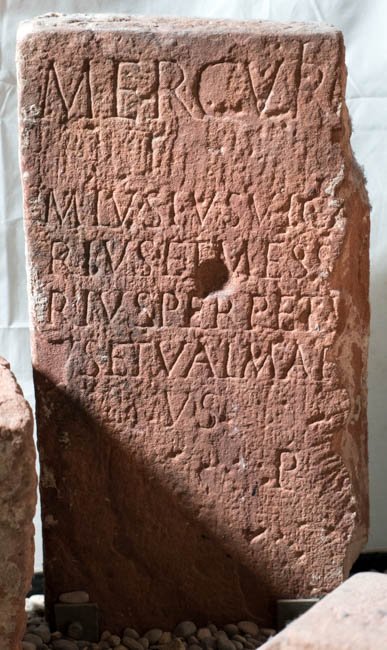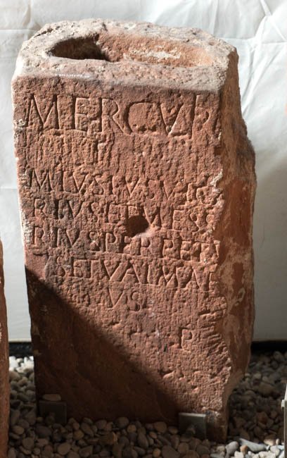 - Mercurio / M(arcus) Lusius Vica/rius et Mess[o]/rius Perpetu/us et Val(erius?) Mar/us / l(ibentes) p(osuerunt)