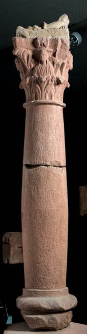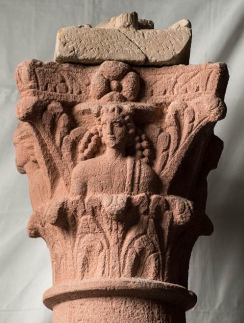 - Glatter Säulenschaft mit korinthischem Kapitell mit Büsten der Jahreszeiten-Personifikationen.