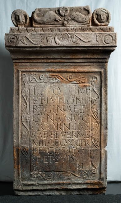 - I(ovi) O(ptimo) M(aximo) / et Iunoni / Reginae et / Genio loci / Q(uintus) Cornelius Sab(atina) Severianus / mil(es) leg(ionis) XXII Pr(imigeniae) / b(ene)f(iciarius) co(n)s(ularis) pro / se et suis / v(otum) s(olvit) l(ibens) m(erito)