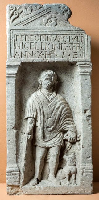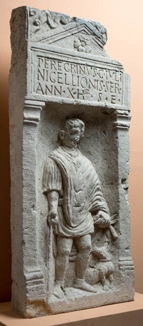 - Peregrinus C(ai) Iuli / Nigellionis ser(vus) / ann(orum) X h(ic) s(itus) e(st)