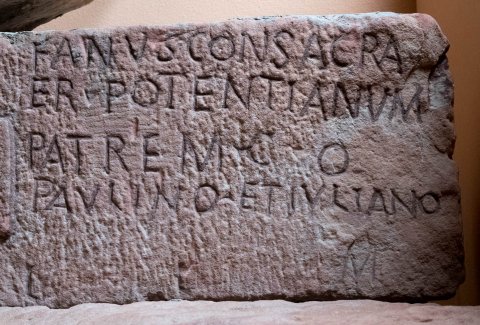 - In h(onorem) d(omus) [d(ivinae)] / deo Invih[to](!) Midr(a)e(!) / Maternin(i)us Faustinu[s] / carax(!) fan[um] cum solo Inviht[o](!) / in suo fecit c[onsa]cratus X K(alendas) Feb(ruarias) // fanus consacra[tus] / per Potentianum / patrem co(nsulibus) / Paulino et Iuliano / l(ibens) l(aetus) m(erito)