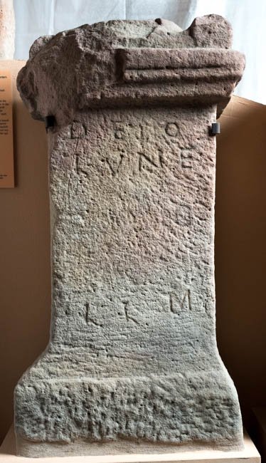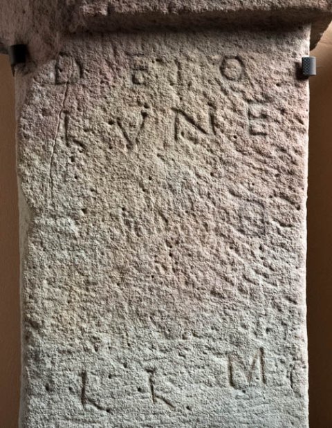 - Deo(!) / Lun(a)e / [------] / [----]O / [------] / [-------] / l(ibens) l(aetus) m(erito)