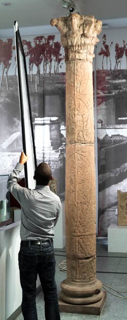 - Säule mit Weinranken um den Schaft, korinthisches Kapitell mit Büsten von Jahreszeitenpersonifikationen.