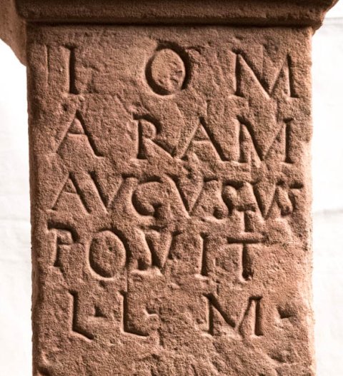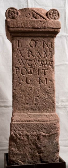 - I(ovi) O(ptimo) M(aximo) / aram / Augustus / posuit / l(ibens) l(aetus) m(erito)