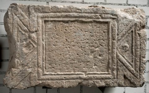 - tabula ansata mit profiliertem Rahmen und Rosetten in den ansae