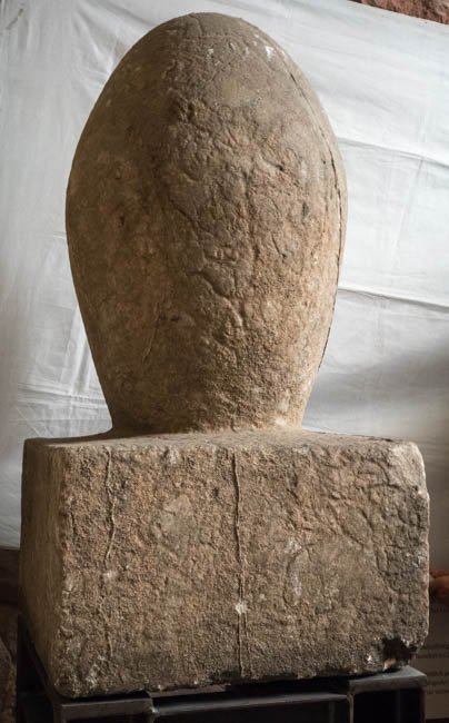 - Pinienzapfen auf kubischem Sockel. Eventuell nicht Bekrönung, sondern eigenständiges Grabmal ?